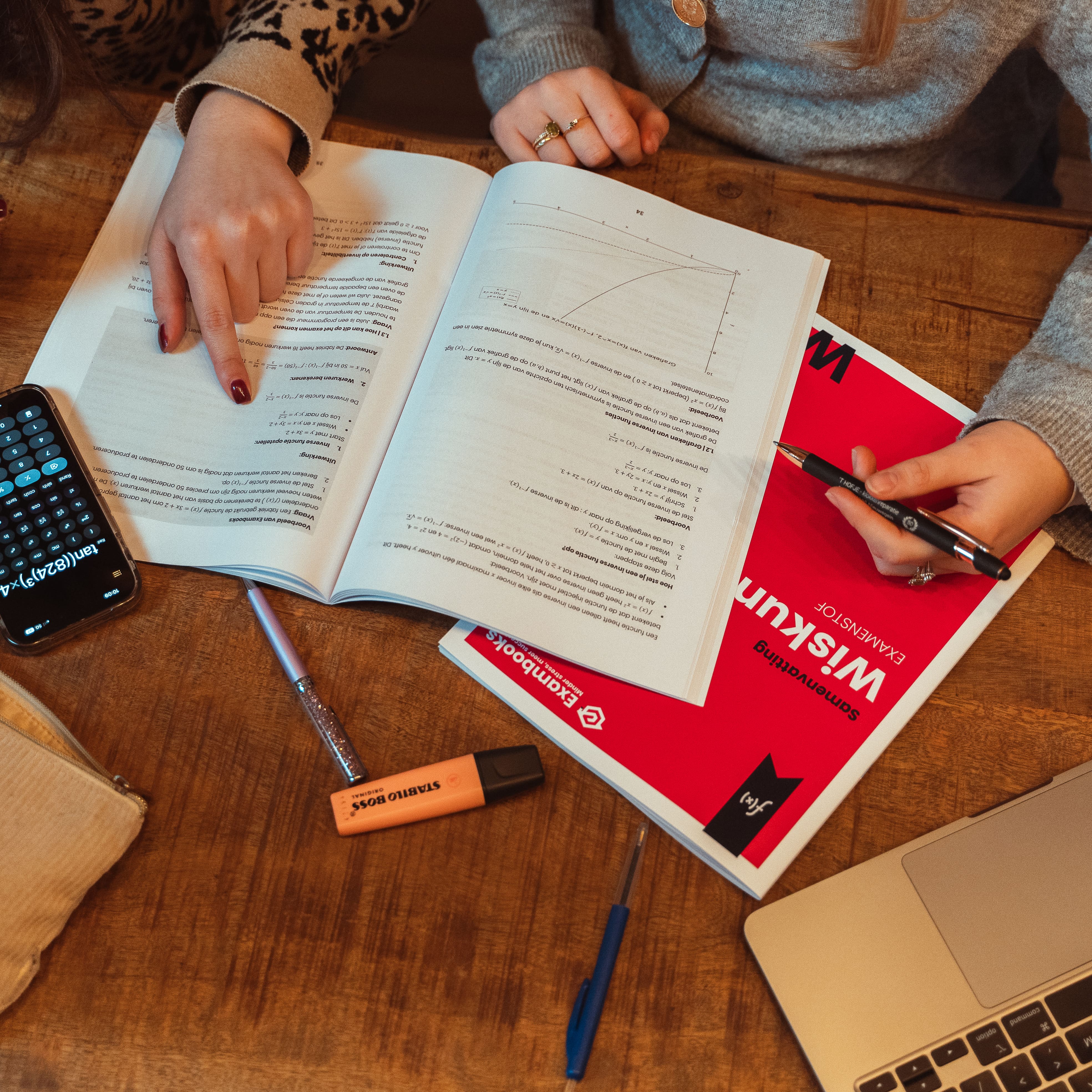 De andere onderdelen, zoals de oefenvragen en examenanalyses, zijn uitsluitend digitaal. Zo kunnen we meer uitleg, actuele inhoud en examengerichte feedback aanbieden, wat zorgt voor een effectievere en modernere leerervaring.